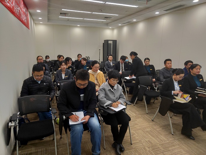 12月3-4日,由周志红副院长带领企学办副主任薛文军、杭国花等对苏州石湖金陵花园酒店网络信息通信管理员、客房服务员和餐厅服务员等工种授课进行了线下教学督查。本次督查对象包括电子信息系针对网络信息通信管理员开展的《操作系统》和《计算机网络》课程,授课教师为电子信息系副主任武晓燕和电子信息系教务科科长万文兵;以及现代服务系针对客房服务员和餐厅服务员开展的《公文写作》、《餐厅服务礼仪》和《茶艺师》课程,授课教师为现代服务系主任糜泽锋和后保处张晓春老师。本次督查,从授课形式、教师行为、授课内容、课堂效果等几个方面对培训授课进行了督查评价。授课教师经过前期精心准备,利用云班课、电子课件等多种形式开展,内容丰富,气氛活跃,学员反应热烈。督查小组对后期授课,提出“强化过程材料收集、合理安排授课难度、分层推进教学、理实一体结合”的改进意见。