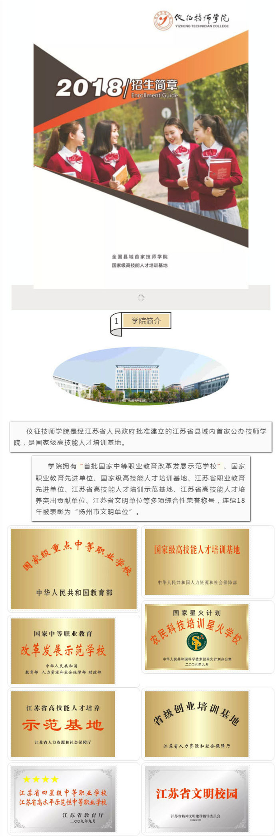 仪征技师学院2018年招生简章