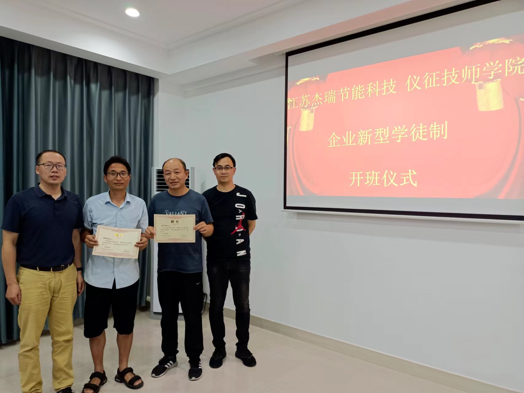 为贯彻落实人力资源社会保障部、财政部《关于全面推行企业新型学徒制的意见》文件精神,切实推进学院“企业新型学徒制”培训工作的顺利开展,进一步提升员工综合技能水平,加快企业高技能人才梯队建设,助推企业高质量发展,7月15日,江苏杰瑞节能科技有限公司——仪征技师学院“企业新型学徒制”培训班开班仪式在江苏杰瑞节能科技有限公司会议室隆重举行。