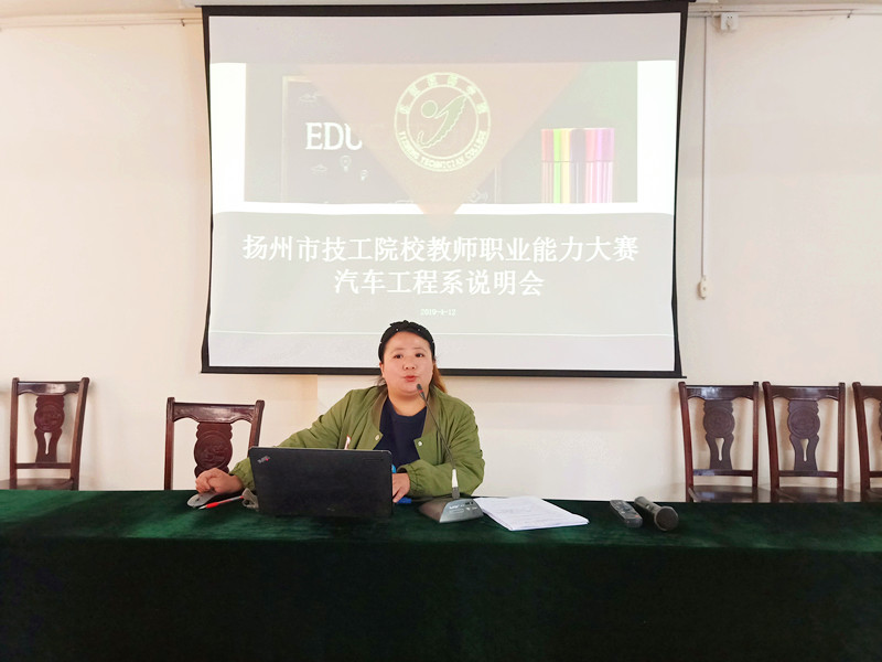 4月12日,汽车工程系全体40周岁以下一线教学人员在D108报告厅召开了“扬州市技工院校教师职业能力大赛汽车工程系说明会”,会议由陈宝珍副主任直接进行全面解读与工作动员。